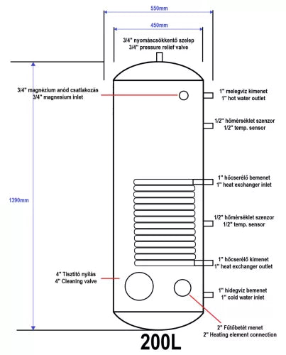 Puffer tartály indirekt HMV hőszivattyúhoz 200lite